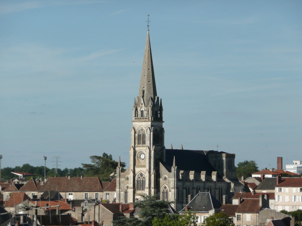 Une première église est construite au 12ème siècle et se situe au cœur d’un faubourg de la ville de Montmorillon. Au 19ème siècle, jugé trop petit et en mauvais état, l’édifice est reconstruit à l’exception de l’ancien chœur et de la tour de clocher datant de l’époque romane. Ces éléments sont encore visibles dans la partie orientale. De style néogothique, ce nouvel édifice présente aussi un mobilier très homogène datant de la même époque : chaire, orgue, vitraux. Ces derniers, en particulier, forment un ensemble de grande qualité témoignant des goûts religieux de l’époque et de la vie économique et sociale de la ville de Montmorillon.