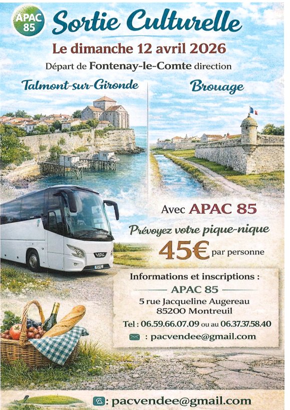 L'association APAC 85 vous propose une sortie culturelle le DIMANCHE 12 AVRIL 2026