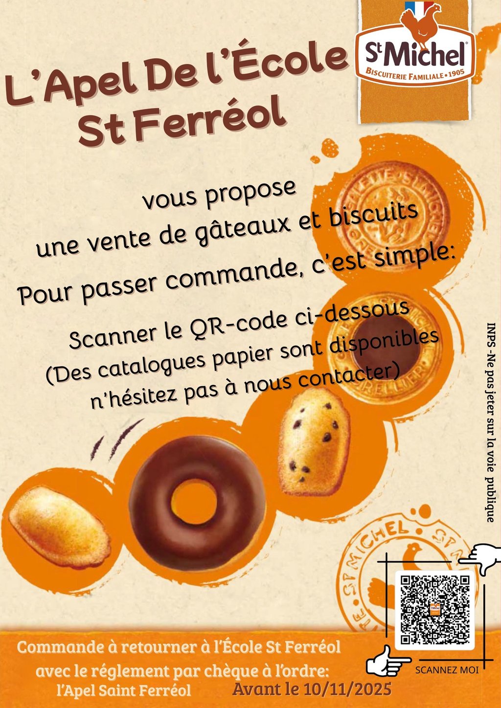 L’Apel St Ferréol organise une vente de gâteaux St Michel du 17 octobre au 10 novembre pour financer les projets pédagogiques de l'école notamment le voyage scolaire !Commandez en ligne : scannez le QR code ci-dessous pour accéder à notre boutique et passer votre commande en quelques clics !