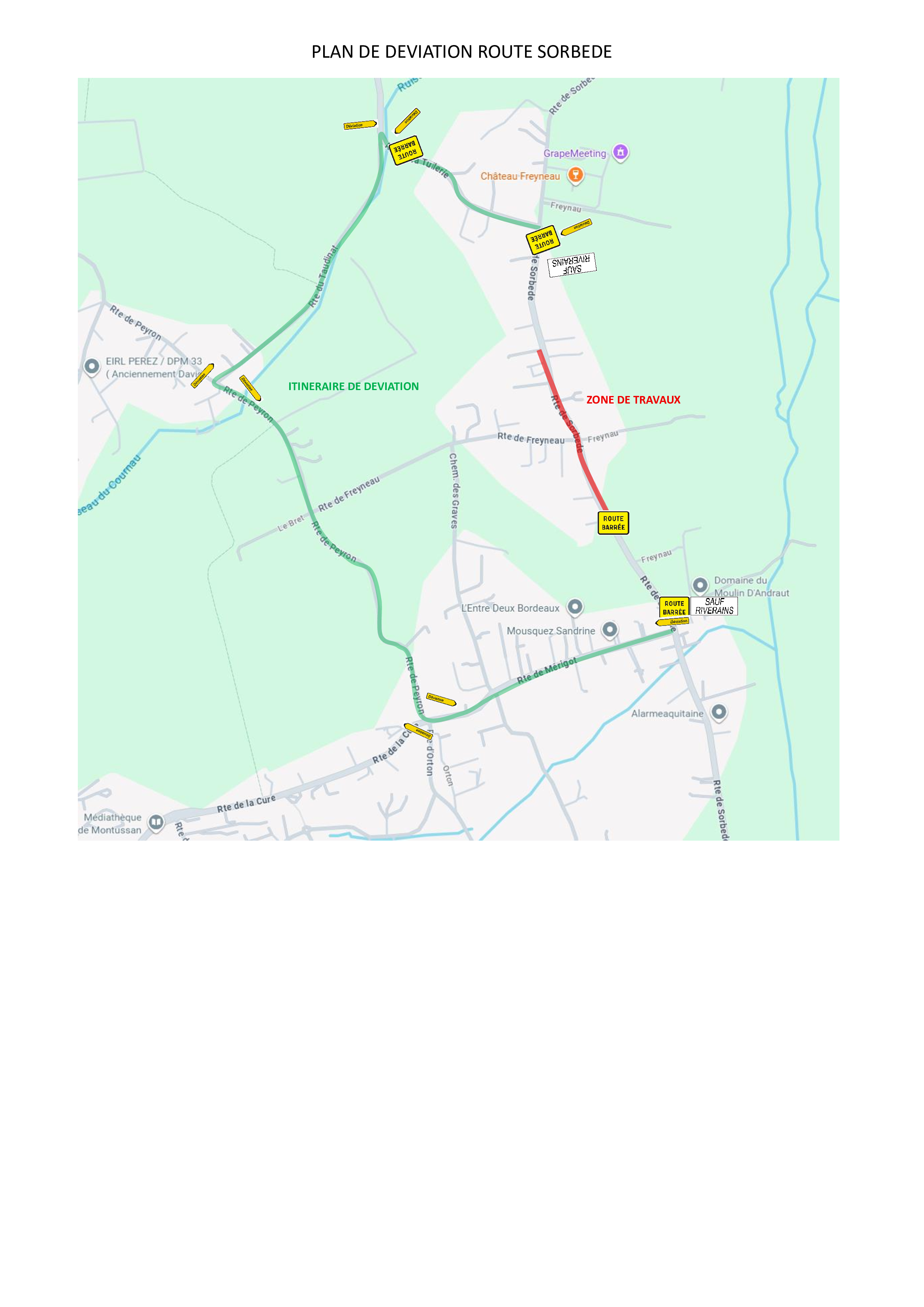 âĄïž DĂ©viation : itinĂ©raire par MĂ©rigot â¶ïž Peyron â¶ïžTaudinat â¶ïž Tuilerie (trajet rallongĂ©).