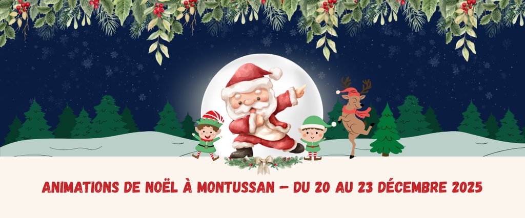 👉 Retrouvez le détail du programme, jour par jour : https://www.montussan.fr/2025/12/02/animations-de-noel-du-20-au-23-12/