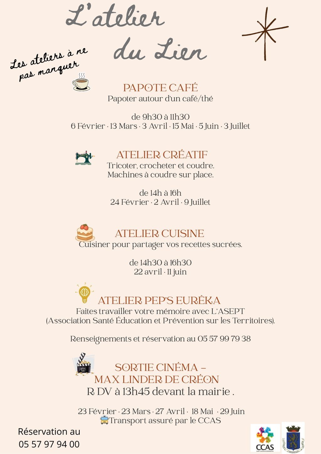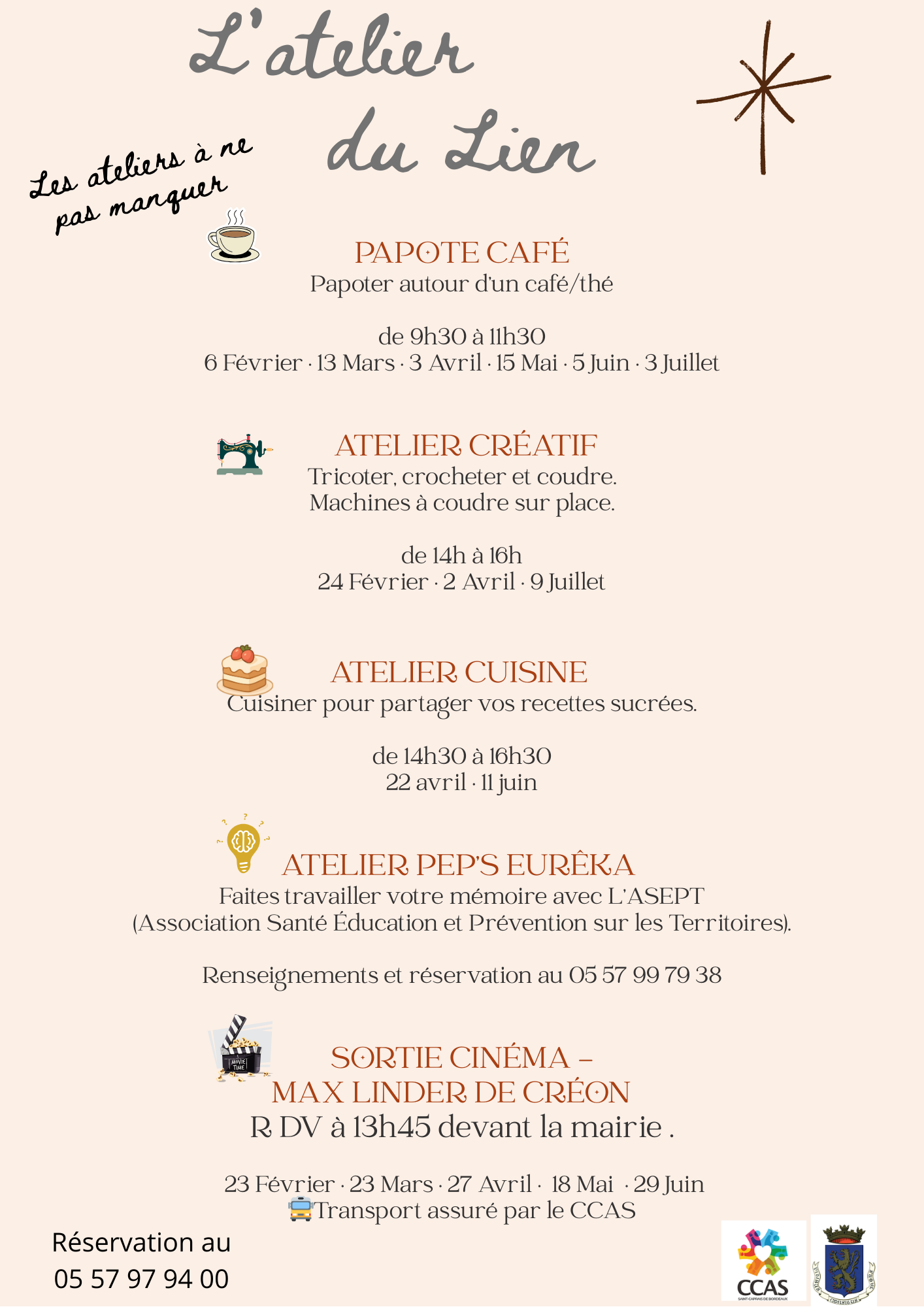 Le nouveau lieu de rencontres du CCAS, l'Atelier du Lien, vous propose prochainement plusieurs rendez-vous.