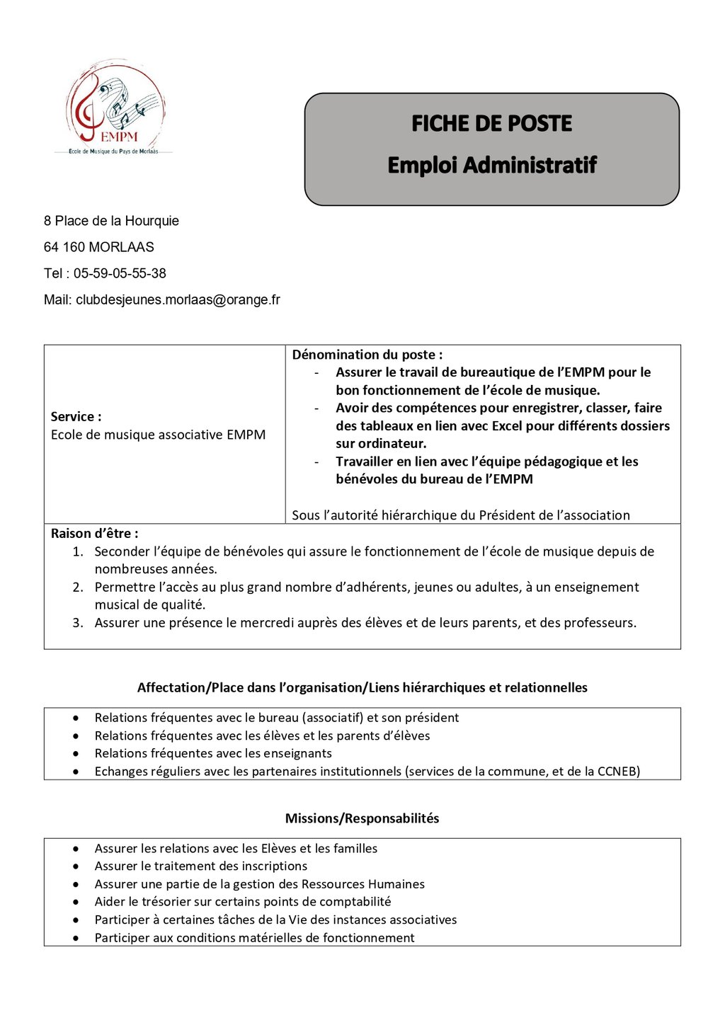 L’École de Musique du Pays de Morlaàs (EMPM), située au 38 place de la Hourquie à Morlaàs, recherche à partir de janvier 2026 :