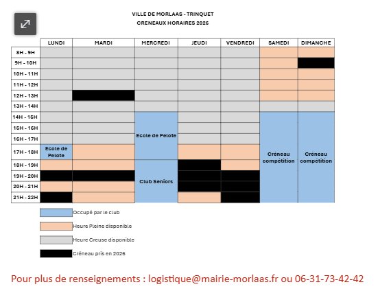 TRINQUET – CRÉNEAUX DISPONIBLES 2026