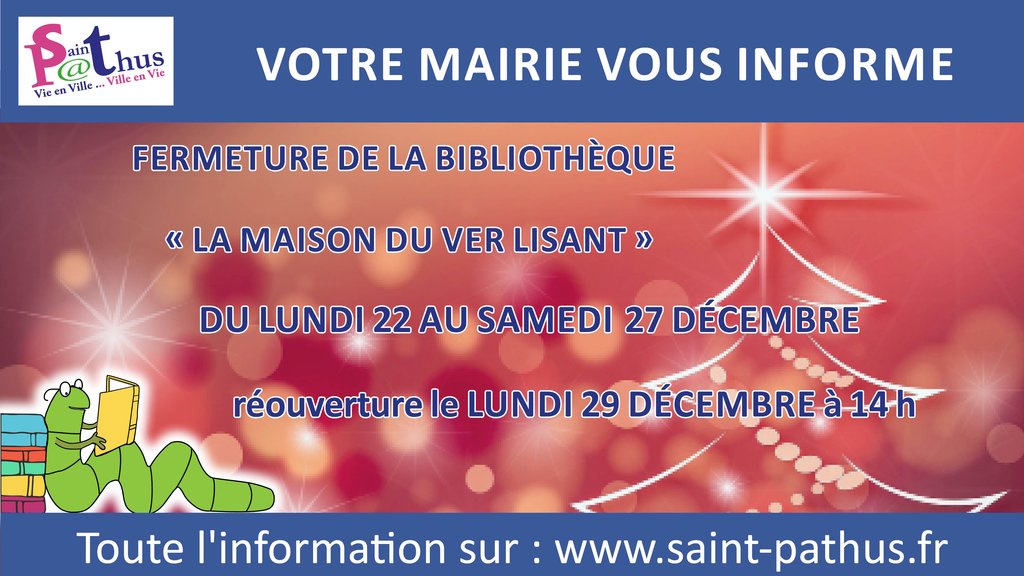 Fermeture de votre bibliothèque pour les congés de fin d'année