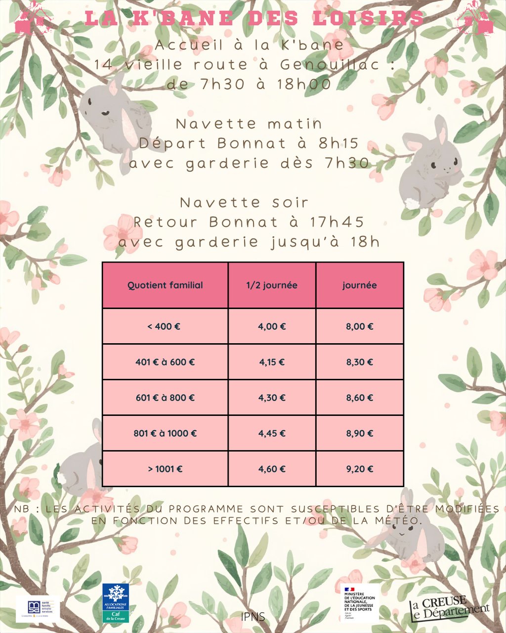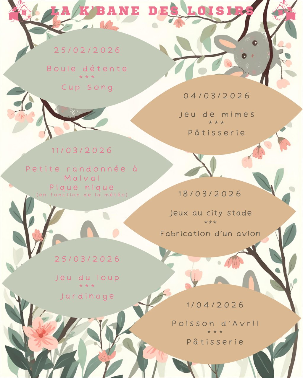 đŁ K'BANE DES LOISIRS : PROGRAMME DES MERCREDIS đ