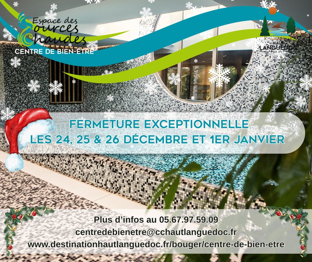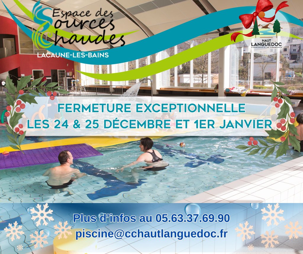 La Piscine des Sources Chaudes et le Centre de Bien-être des Sources Chaudes de Lacaune vous informent que les établissements seront fermés