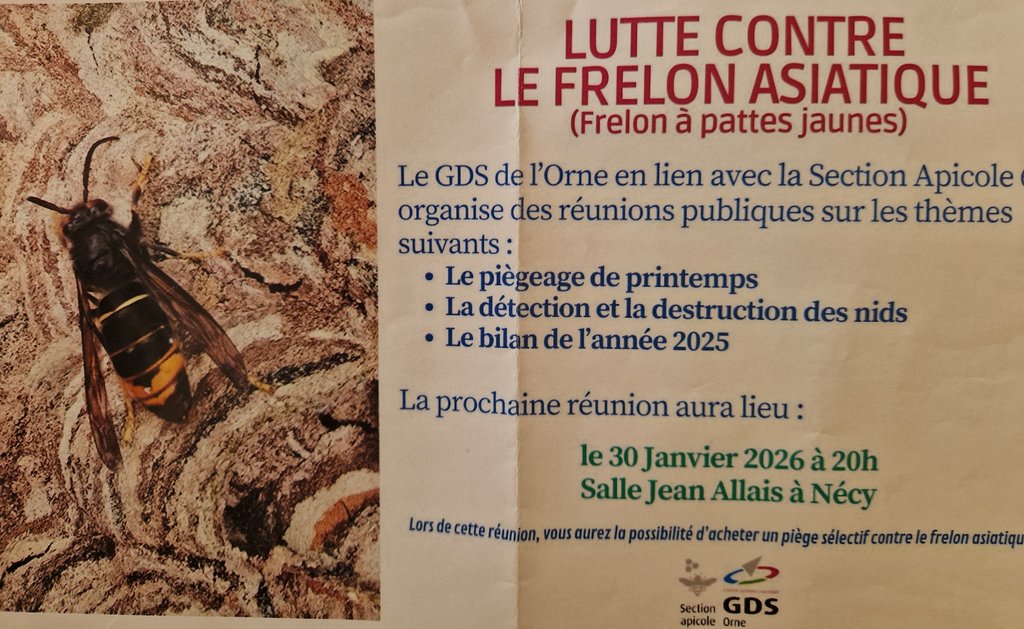 Le GDS de l'Orne organise des réunions publiques d'information à propos du FRELON ASIATIQUE :