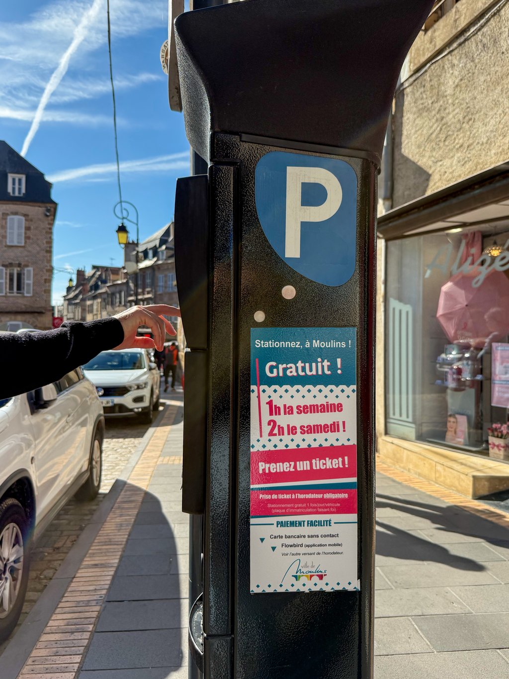 En centre-ville de Moulins, le stationnement est gratuit 1h en semaine et 2h le samedi !