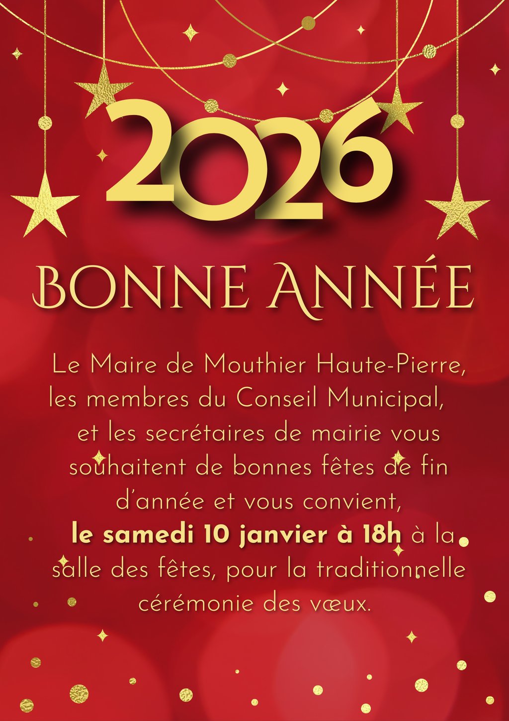 Les voeux du maire auront lieu samedi 10 janvier 2026 à 18h à la salle des fêtes
