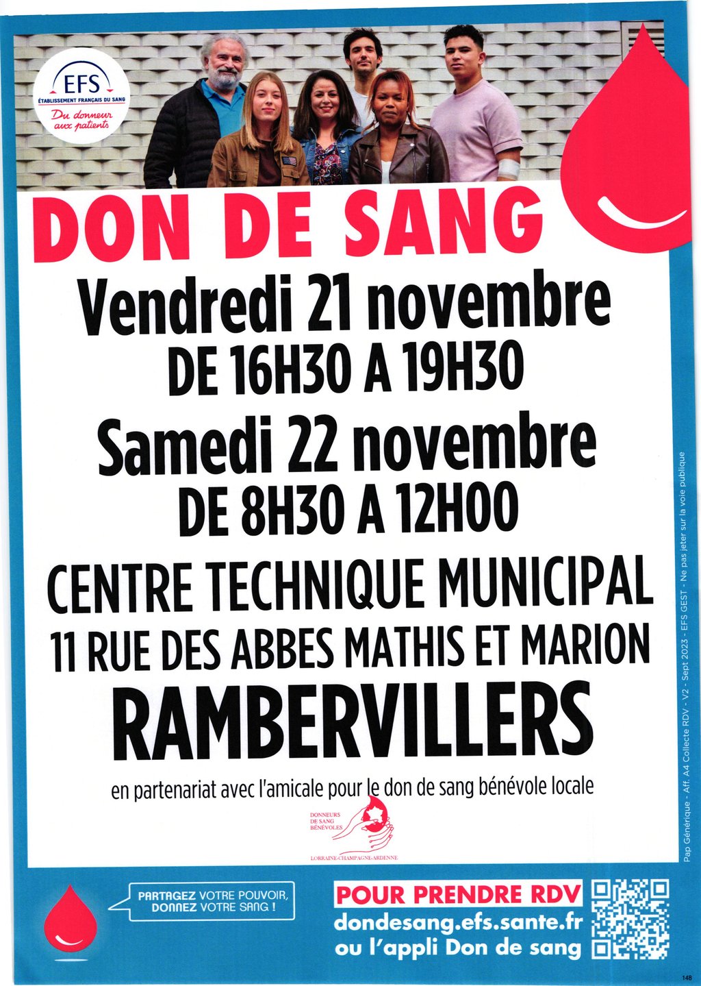 Don de sang au Centre technique municipal, 11 rue des abbés Mathis et Marion à Rambervillers