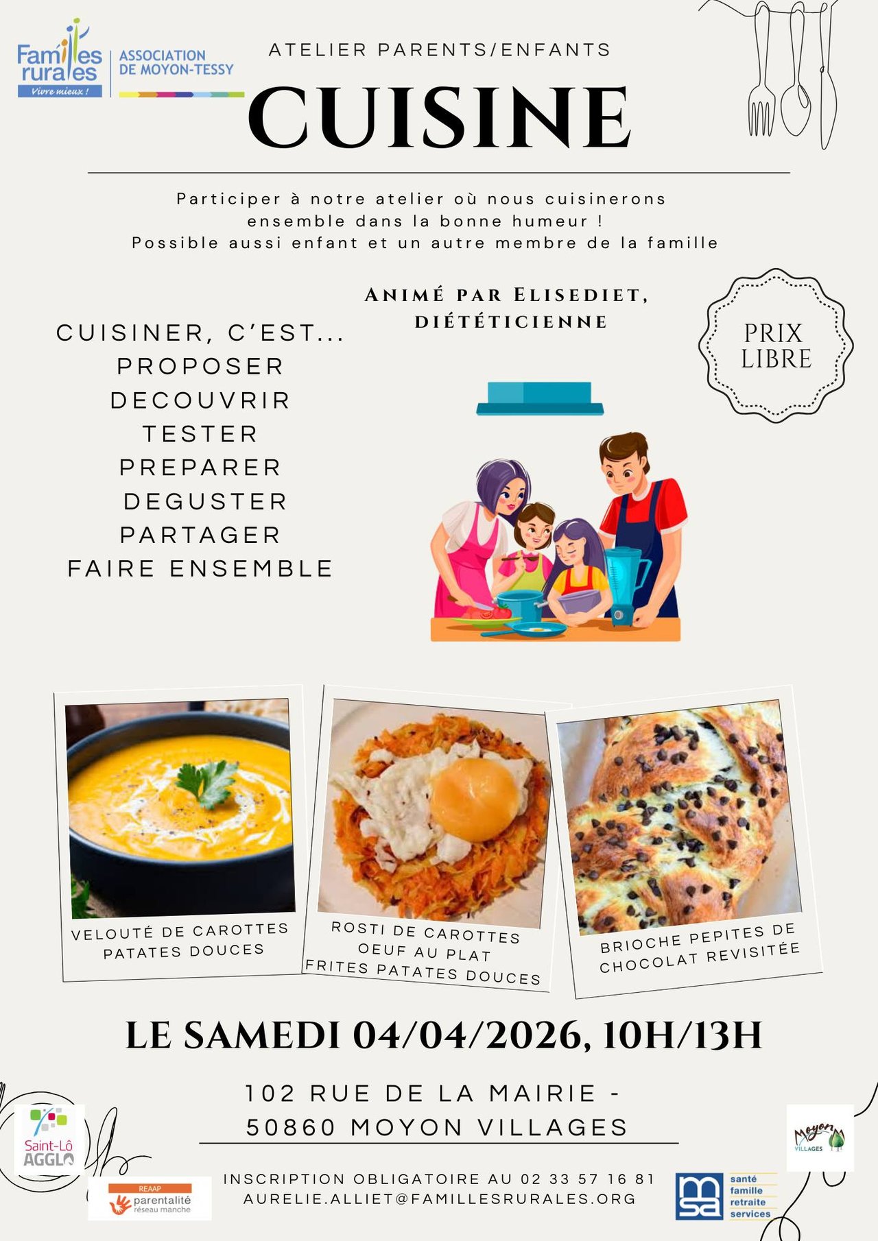Inscription au 02 33 57 16 81 ou aurelie.alliet@famillesrurales.org
