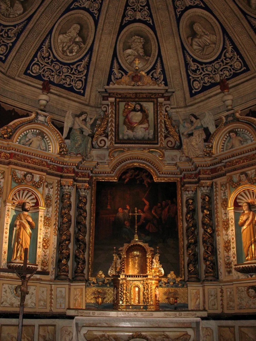 Une sculpture unique en France au plafond de l'église Saint Thomas de Cantorbéry: Le Gisant en Clé de voûte. Cela reste un véritable mystère.