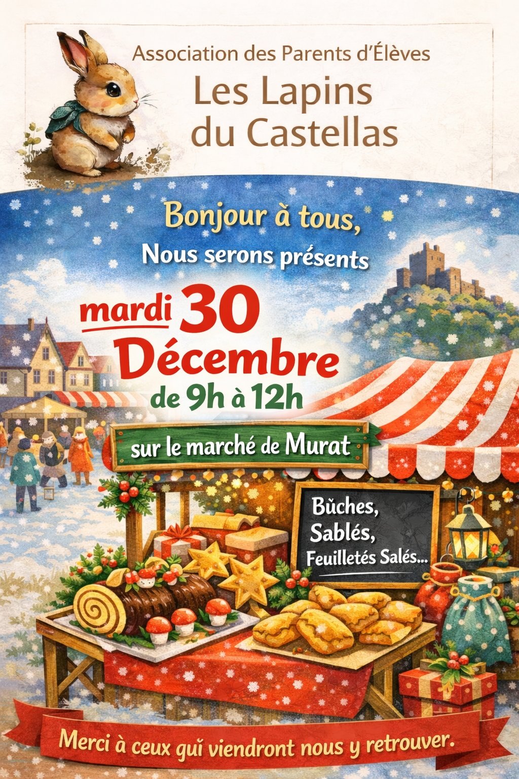 VENTE DE PATISSERIES SUR LE MARCHE DE MURAT PAR L'APE LES LAPINS DU CASTELLAS