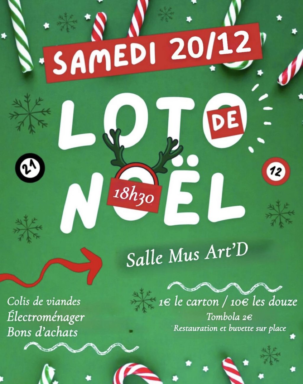 Voici le dernier événement du comité des fêtes pour clôturer cette année 2025 ! Un loto de Noël !