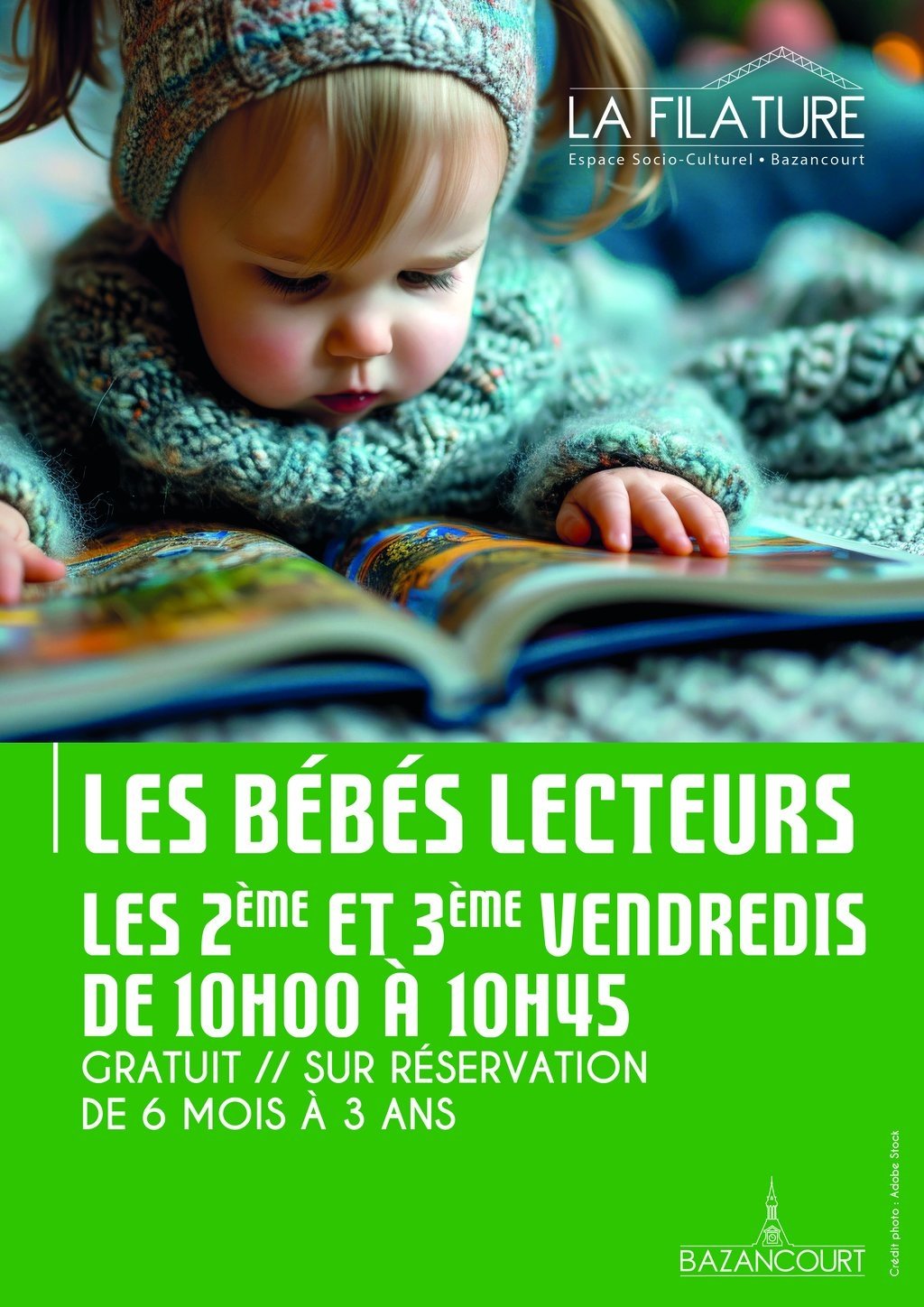 Vos bibliothécaires vous proposent une animation d’éveil culturel destinée aux tout-petits. Cette activité conviviale sensibilise et familiarise l’enfant aux livres, en l’aidant à développer son langage, sa curiosité et son écoute.