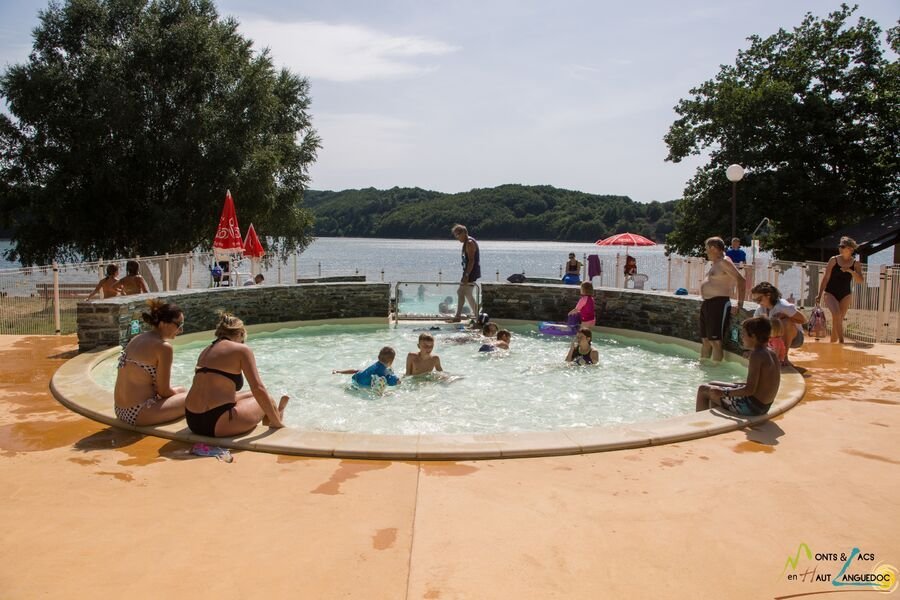Pataugeoire et bassin de natation avec vue sur le lac. Bassin gratuit, chauffé et surveillé de juin à septembre.