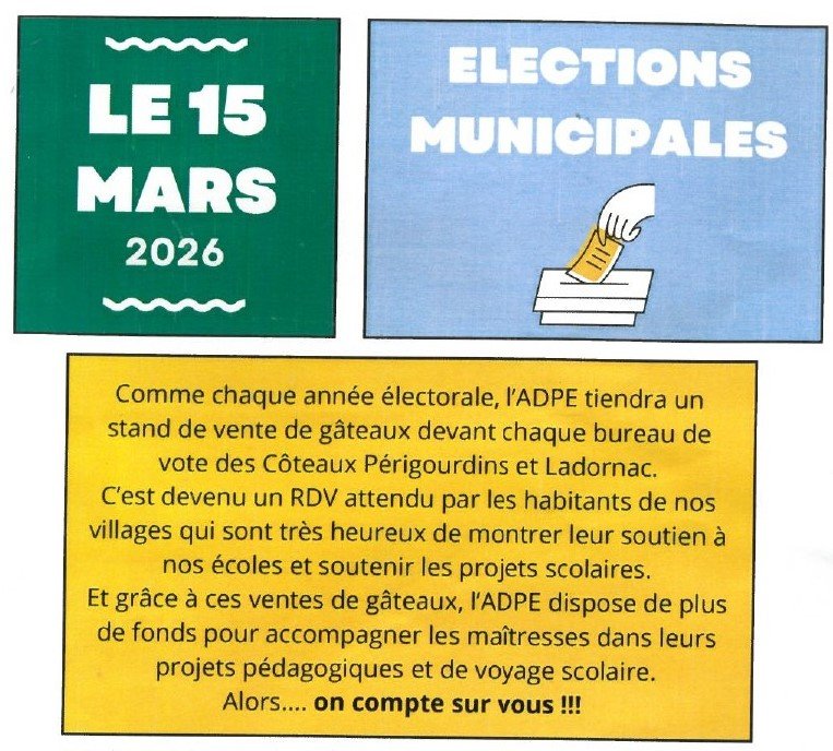 L'ADPE tiendra un stand de vente de gâteaux au profit des écoles devant le bureau de vote le 15 mars 2025