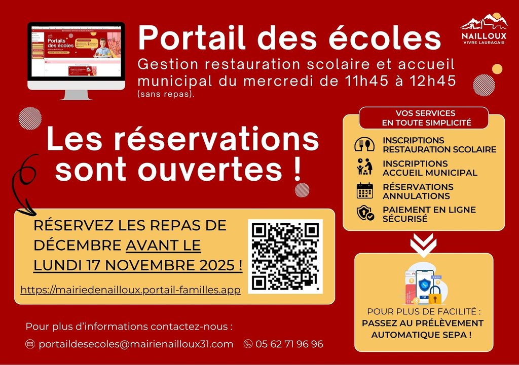 Pensez à réserver les repas de votre enfant pour le mois de janvier : Vous avez jusqu’à demain vendredi 12 décembre pour effectuer votre réservation.