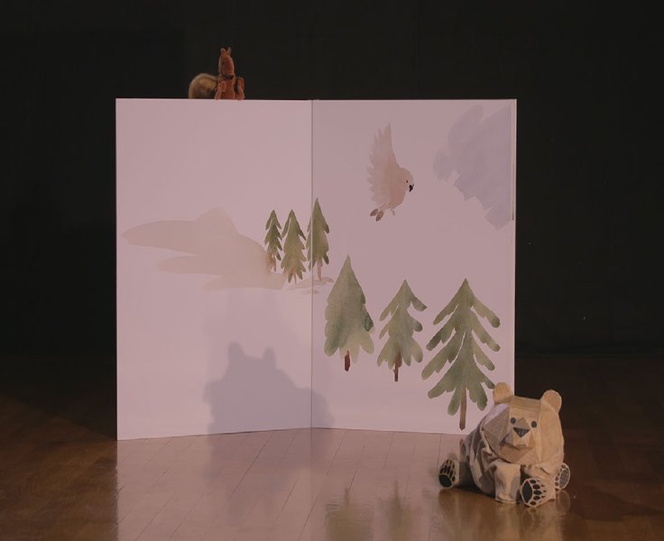 Au fil des pages d'un livre accordéon géant, L'ours tendre évolue, en quête de sens, d'amour et d'inclusion.