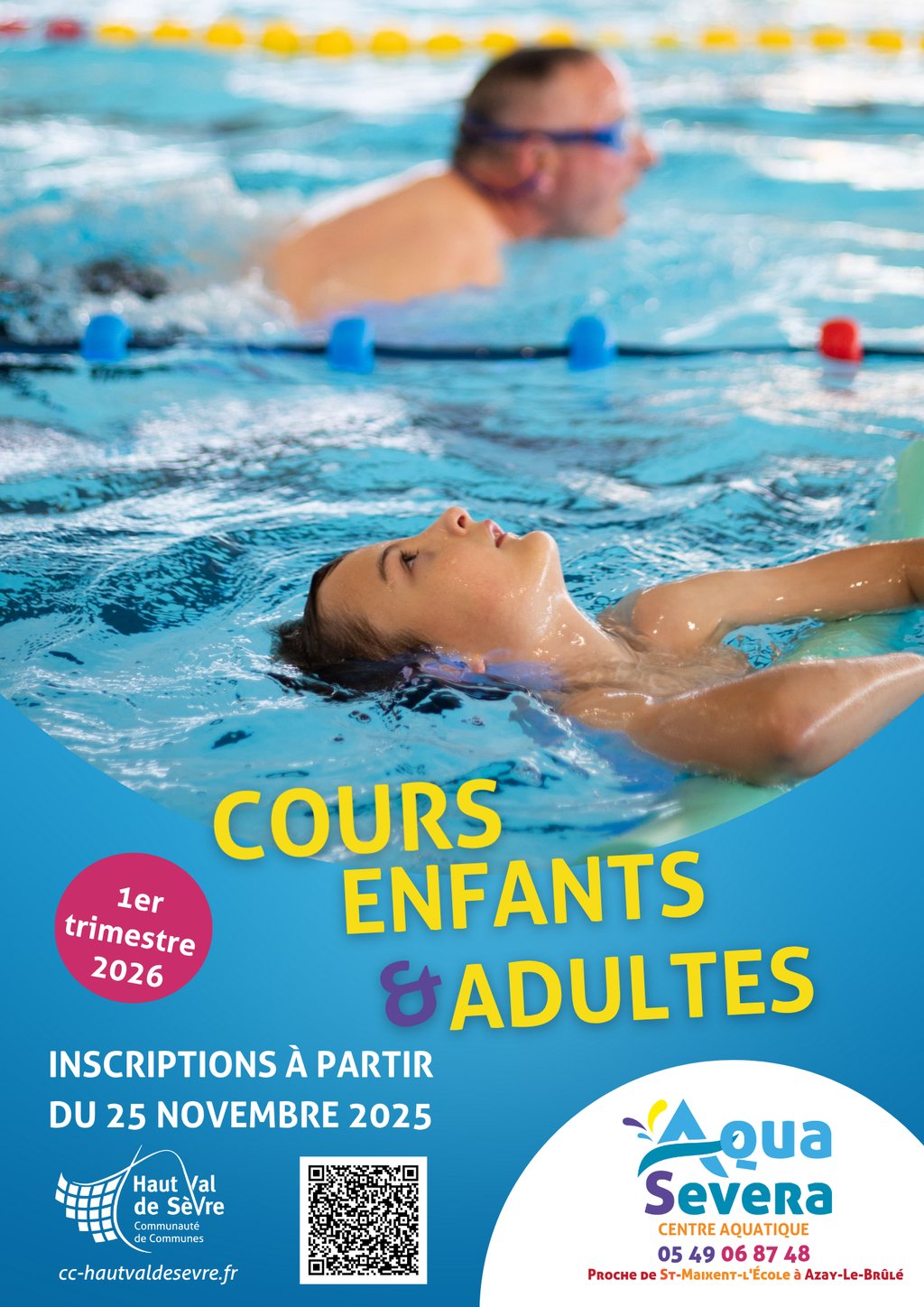 CENTRE AQUATIQUE : INSCRIPTIONS COURS 1ER TRIMESTRE 2026