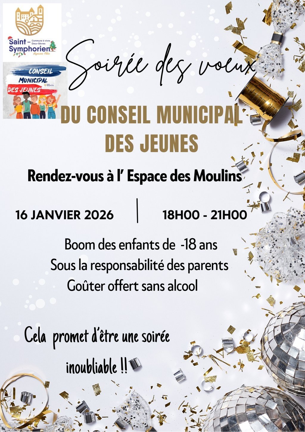 Rendez-Vous le 16 janvier 2026 à partir de 18h00 pour les vœux du Conseil Municipal des Jeunes (Espace des Moulins) 🥳