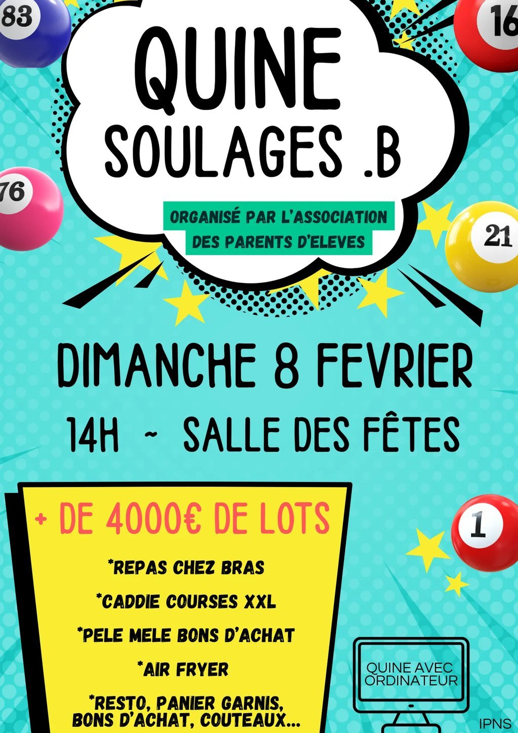 Quine organisé par l'APE à 14h à la Grange de Soulages Bonneval