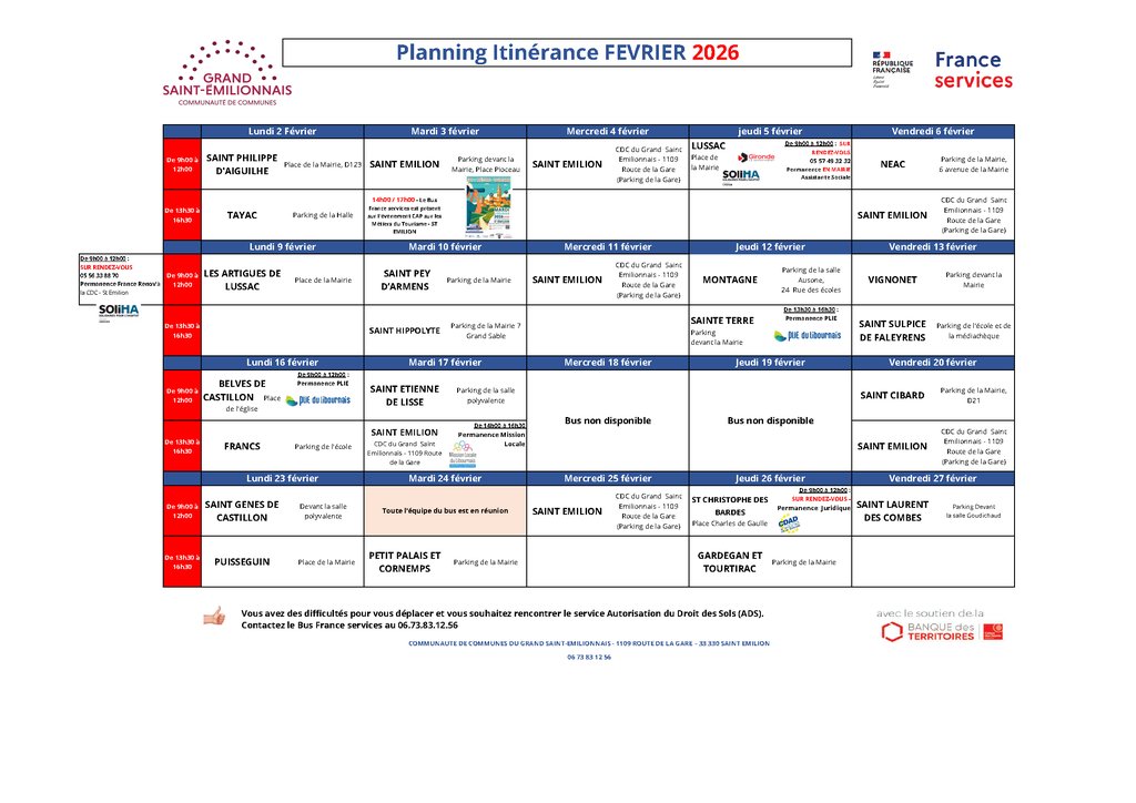 PERMANENCES BUS FRANCE SERVICES - FÉVRIER 2026
