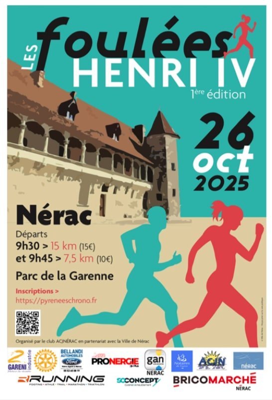 retrait dossard uniquement le dimanche matin à l’espace d’Albret de Nérac le dimanche 26 octobre 2025 de 7h30 à 8h45. Pas de vente de dossard sur place.