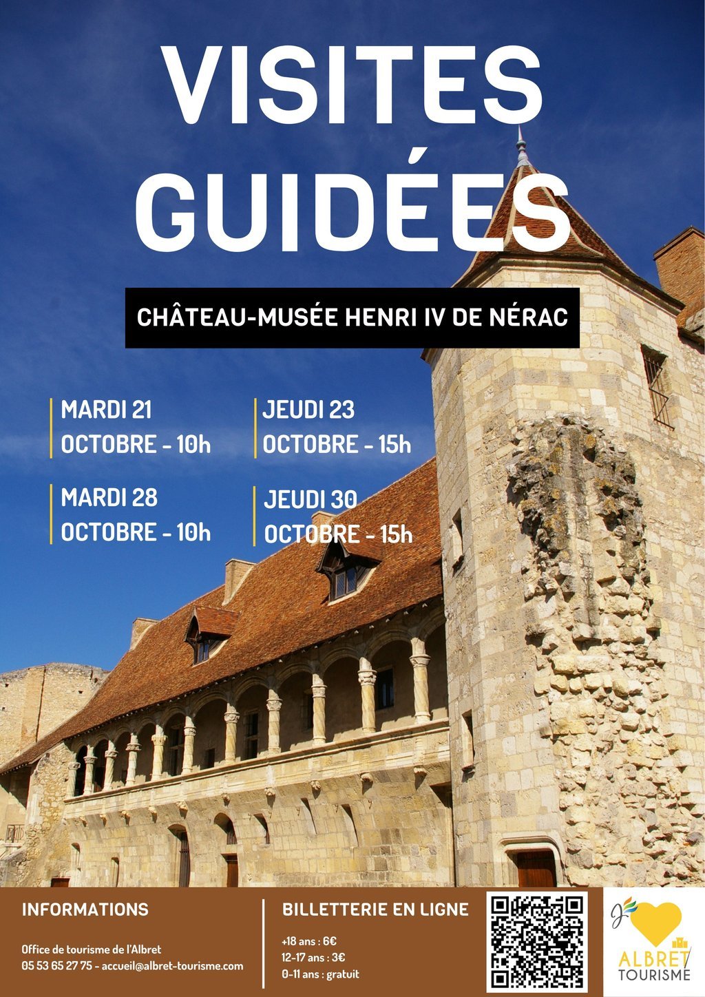 Le Château-Musée Henri IV de Nérac vous ouvre ses portes pour des visites guidées exclusives pendant les vacances de Toussaint, en compagnie de nos guides passionnés Axel et Pierre, avec 4 dates à ne pas louper : les mardis 21 et 28 octobre à 10h et les jeudis 23 et 30 octobre à 15h.