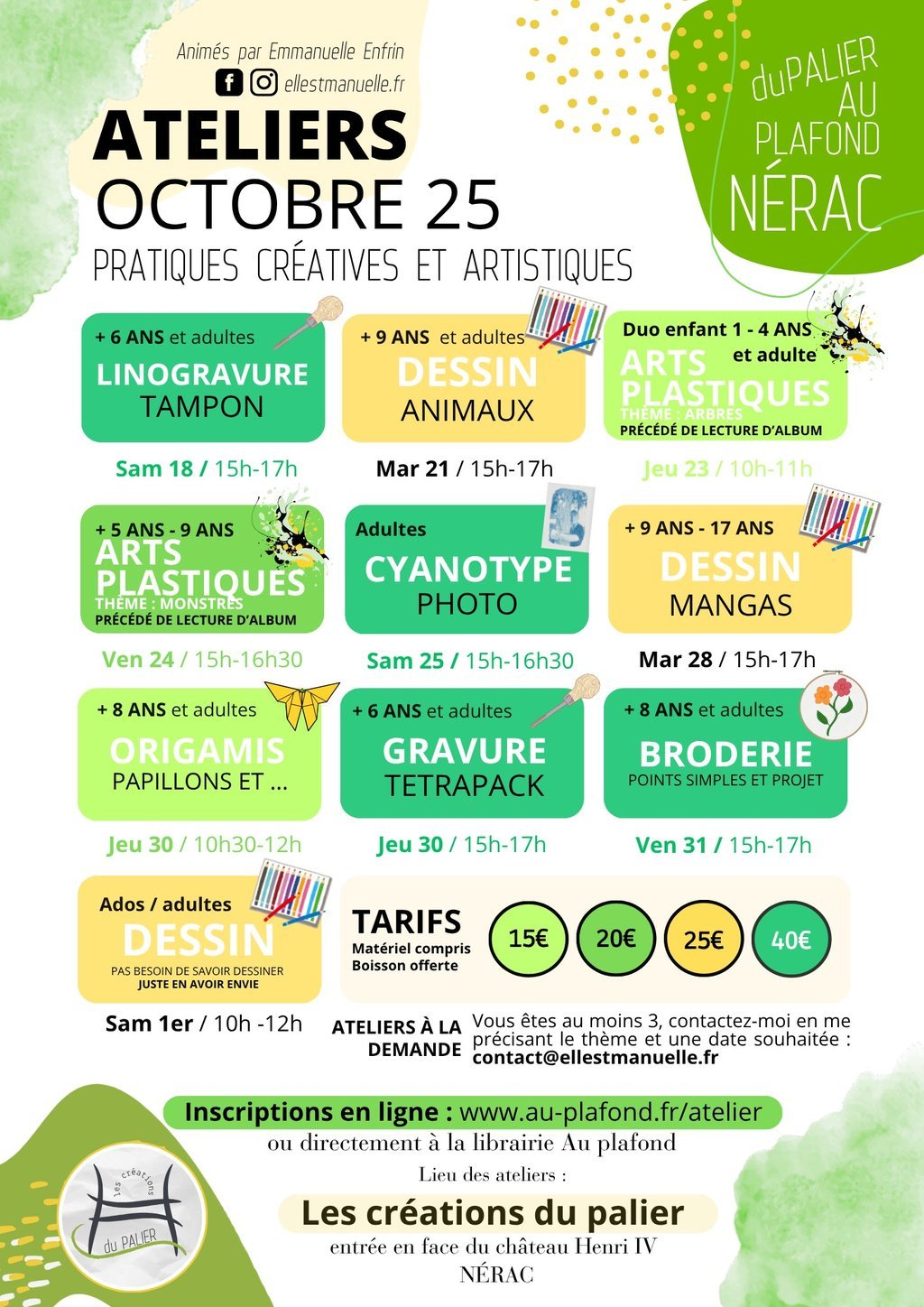Inscriptions sur : au-plafond.fr/atelier ou directement à la librairie Au plafond.