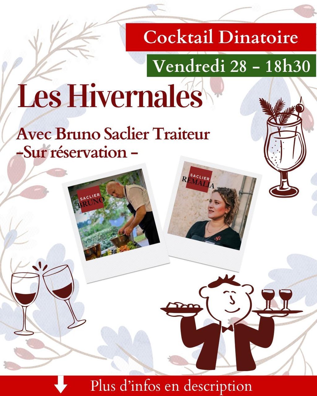 La Grande Clôture à partir de 18h30. Cocktail dinatoire avec Bruno Saclier (sur réservation, 28 € par personne, boissons en plus).