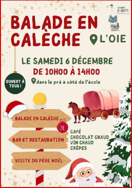 Organise le SAMEDI 6 DÉCEMBRE une balade en calèche