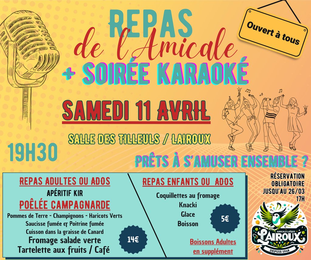🎉🎤 Soirée Repas & Karaoké à Lairoux 🥳 Réservation ouverte ! 🍽️🎶