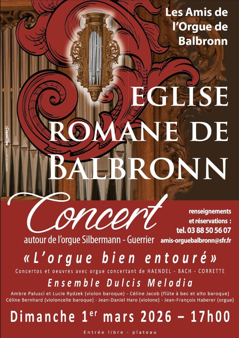 Les Amis de l'orgue vous proposent un concert "l'orgue bien entouré " dimanche 1er mars à 17h en l'église protestante de Balbronn