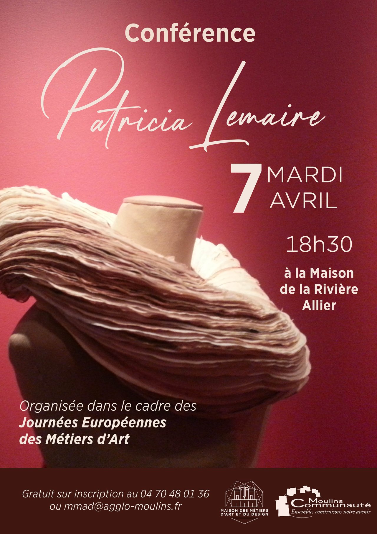 En ouverture des JEMA, la Maison des métiers d’art et du design invite Patricia Lemaire pour une conférence, l’occasion de découvrir son parcours et sa démarche artistique autour du bijou contemporain, mais aussi d’appréhender son utilisation du papier dans ses créations.
