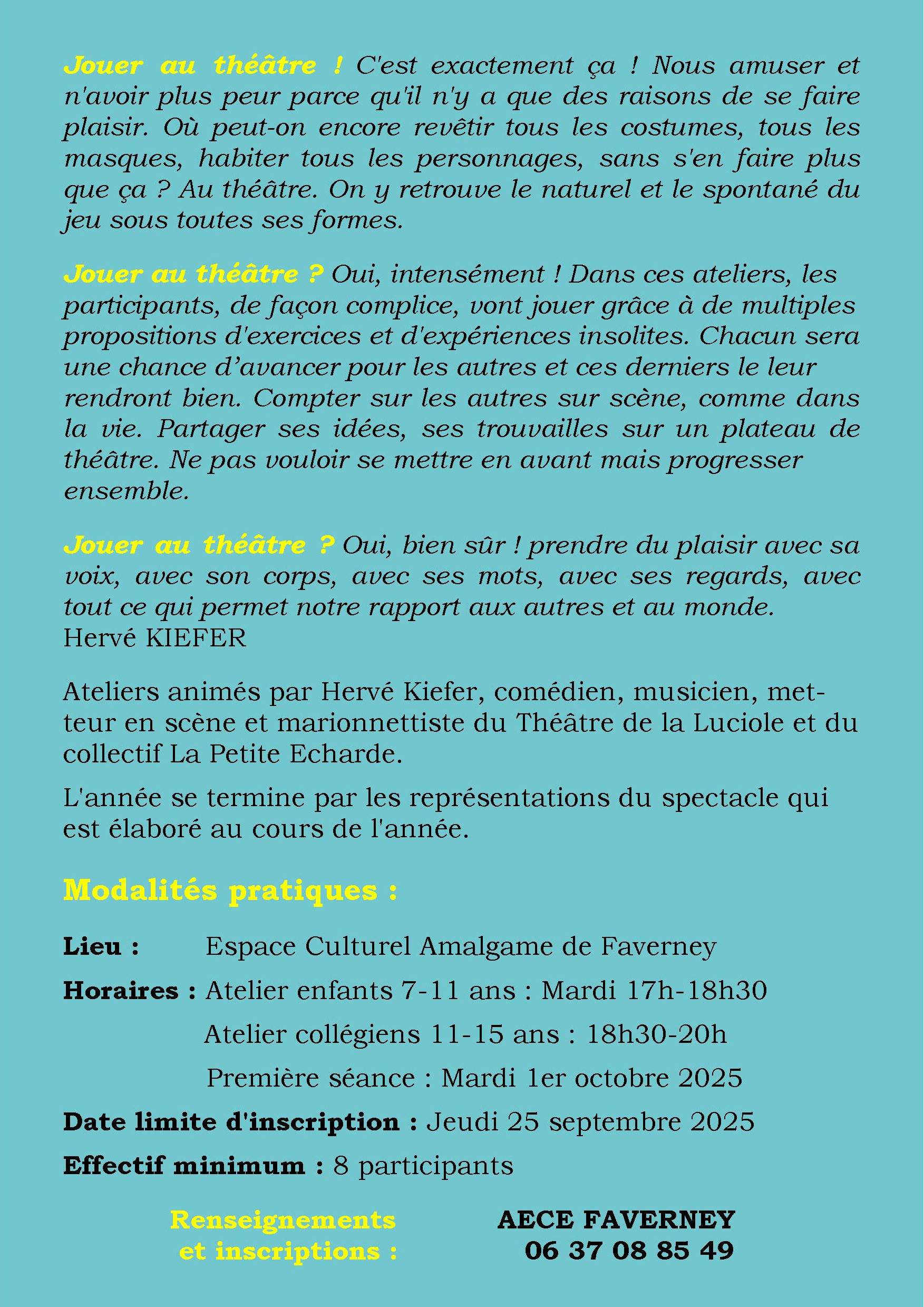 Inscriptions au plus tard le 25 septembre 2025 - Effectif minimum : 8 participants