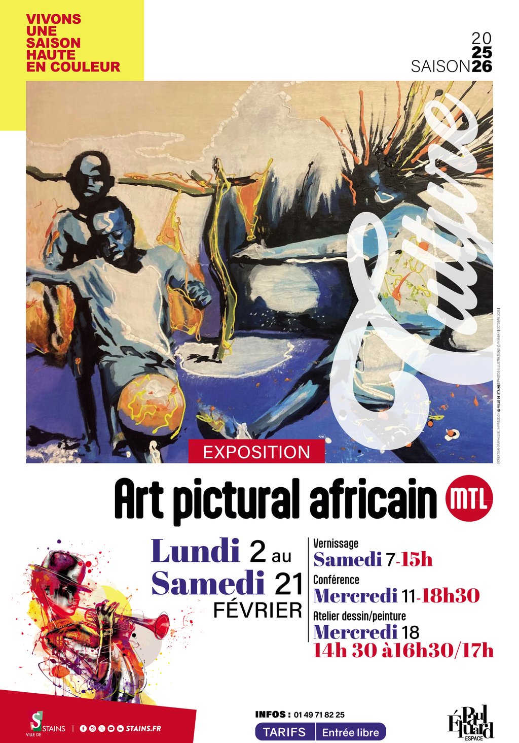 Du lundi 2 au samedi 21 février, la Ville de Stains vous propose de découvrir l’exposition Art pictural africain à la Maison du Temps Libre Olivier-Abderide (MTL).