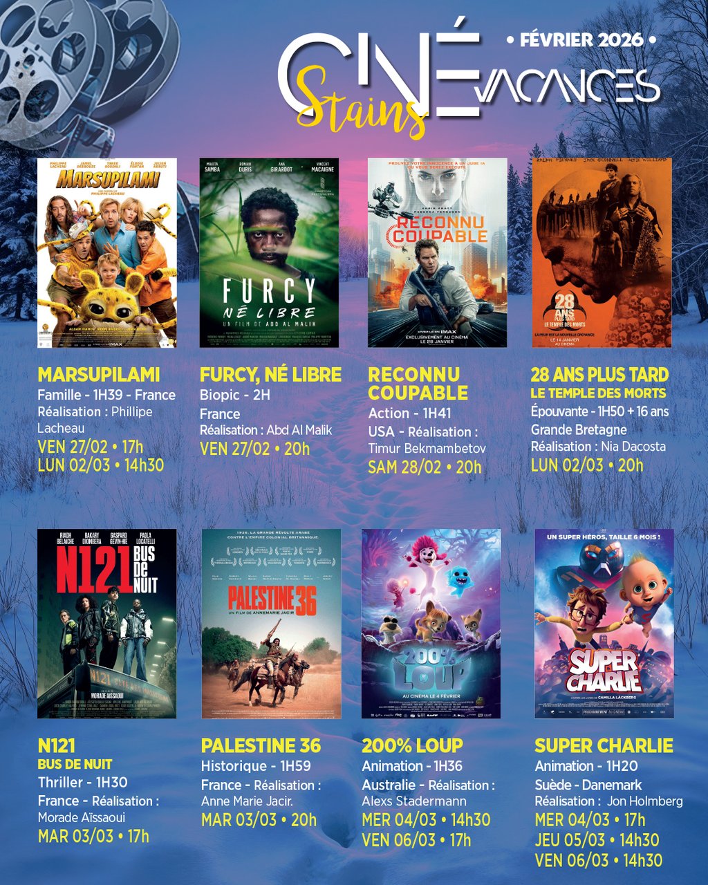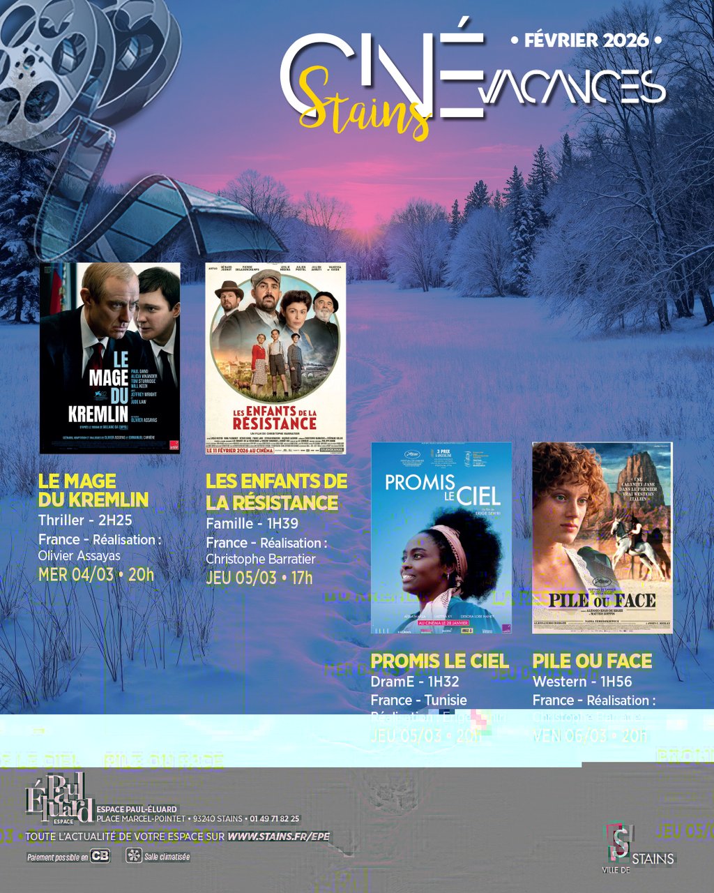 Comme à chaque période de congés scolaires, la Ville de Stains propose une programmation riche et accessible, avec des séances au tarif unique de 2,50 €