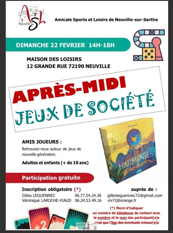 Après midi Jeux de Sociétés : atelier ouvert à tous et toutes dès 11 ans le dimanche 22 février 2026 de 14 h 00 à 18 h 00 - Maison des Loisirs de Neuville