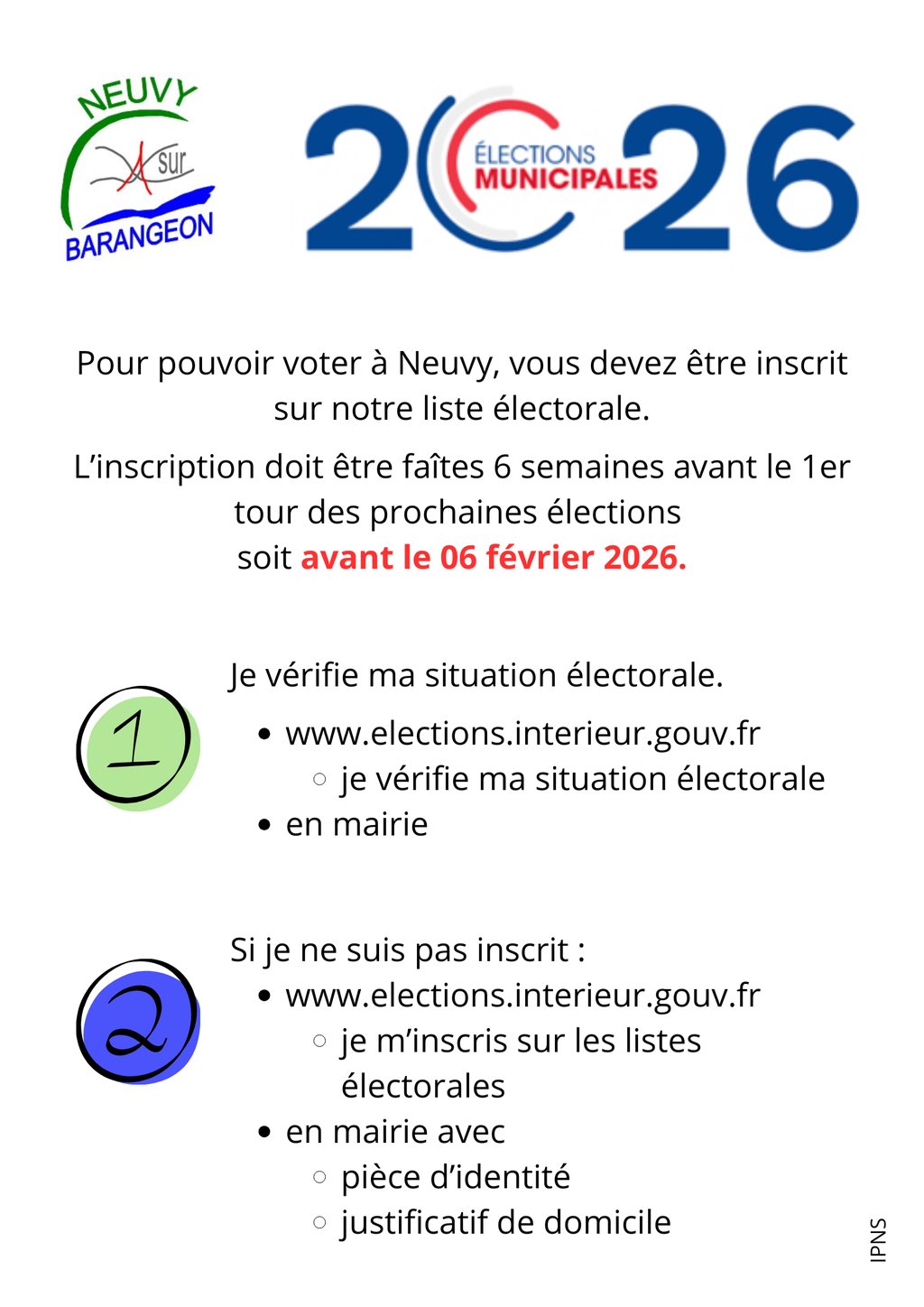 Si vous souhaitez voter aux élections municipales de mars 2026 alors que vous n'êtes pas inscrit sur les listes électorales, vous devez vous inscrire au plus tard le 6 février 2026.