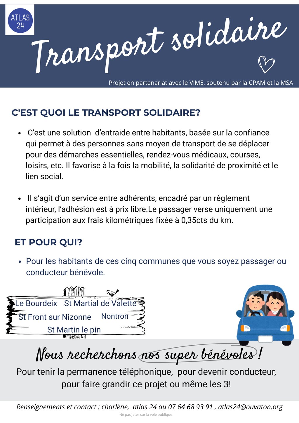 TRANSPORT SOLIDAIRE - RECHERCHE DE BÉNÉVOLES