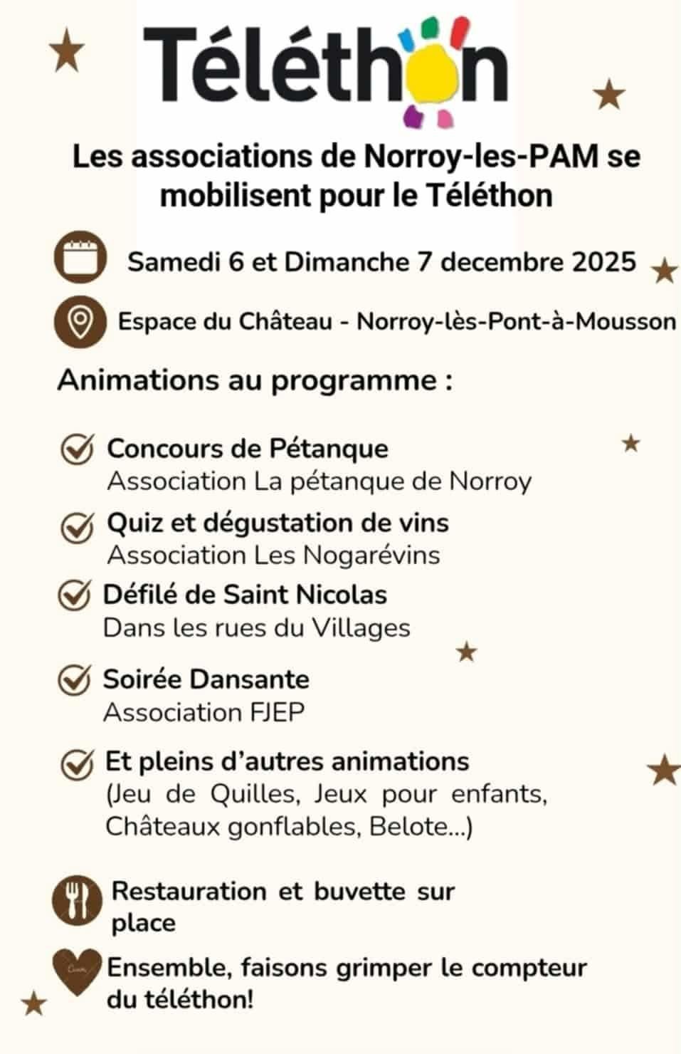 Les associations du village organisent le Téléthon le week-end du 06 et 07 décembre 2025.