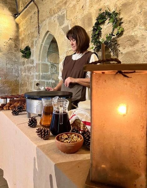 Au goûter : crêpes, pain d'épices et boissons chaudes… Remontez le cours du temps pour jouer aux jeux de la société médiévale : la mourre, le roi qui jamais ne ment, colin maillard...