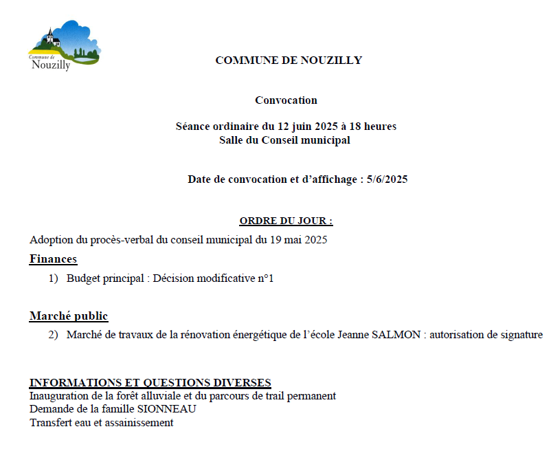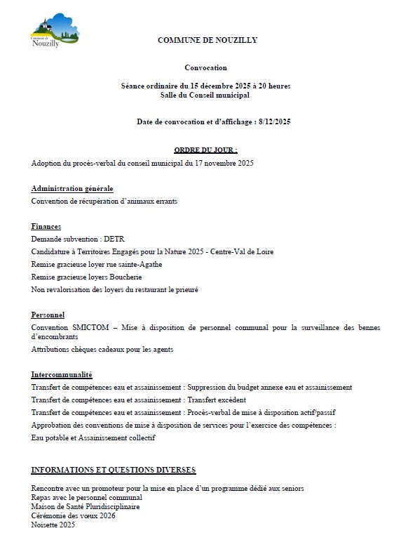 La prochaine séance du conseil municipal aura lieu le lundi 15 décembre 2025 à 20h