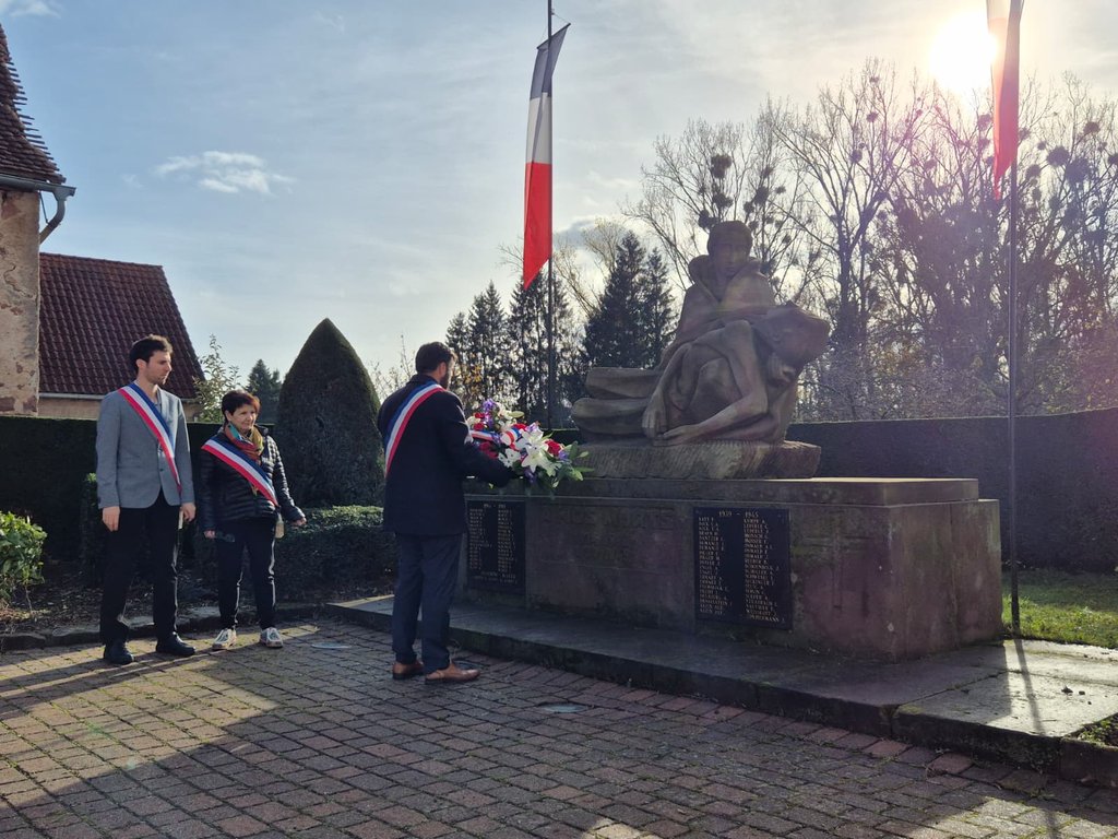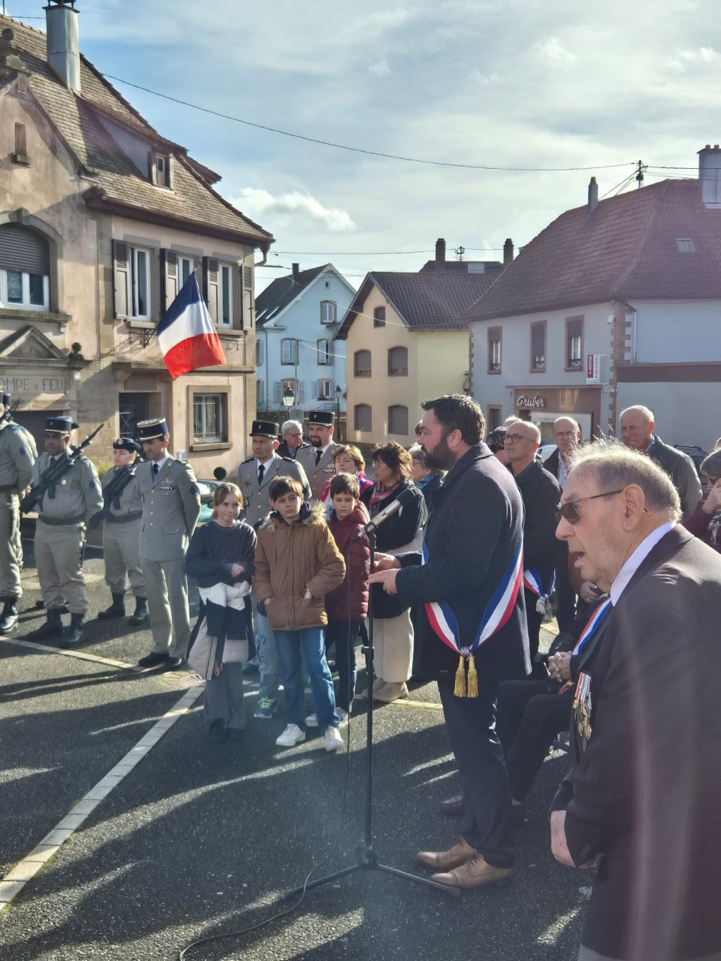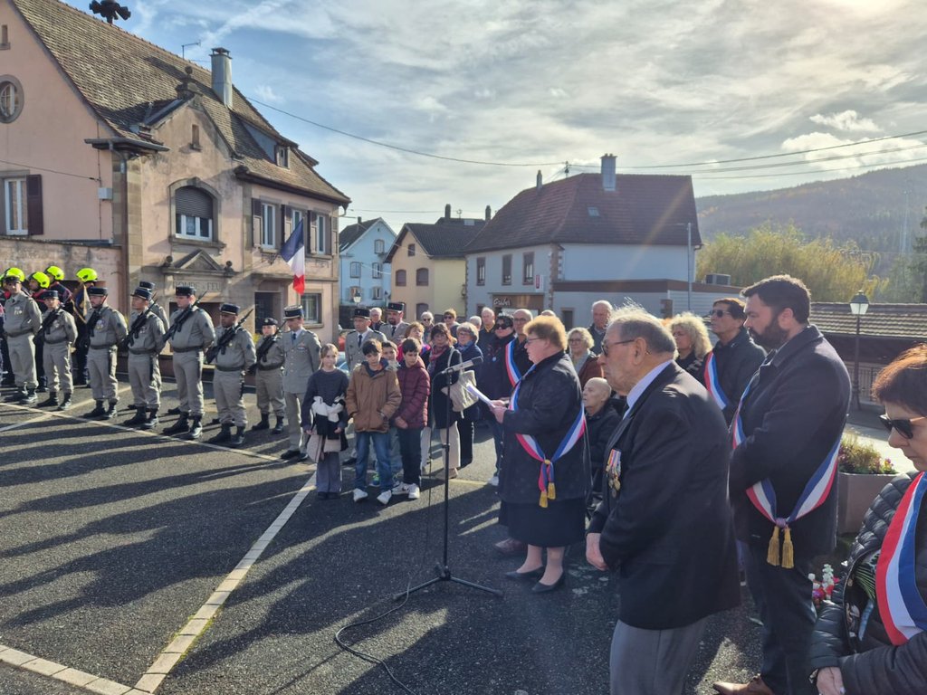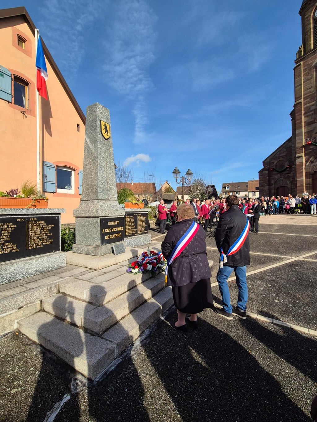 Après le traditionnel dépôt de gerbe au monument aux morts d’Oberhaslach, nous nous sommes retrouvés à Urmatt pour une cérémonie commune rassemblant les communes d’Oberhaslach, de Niederhaslach et d’Urmatt.
