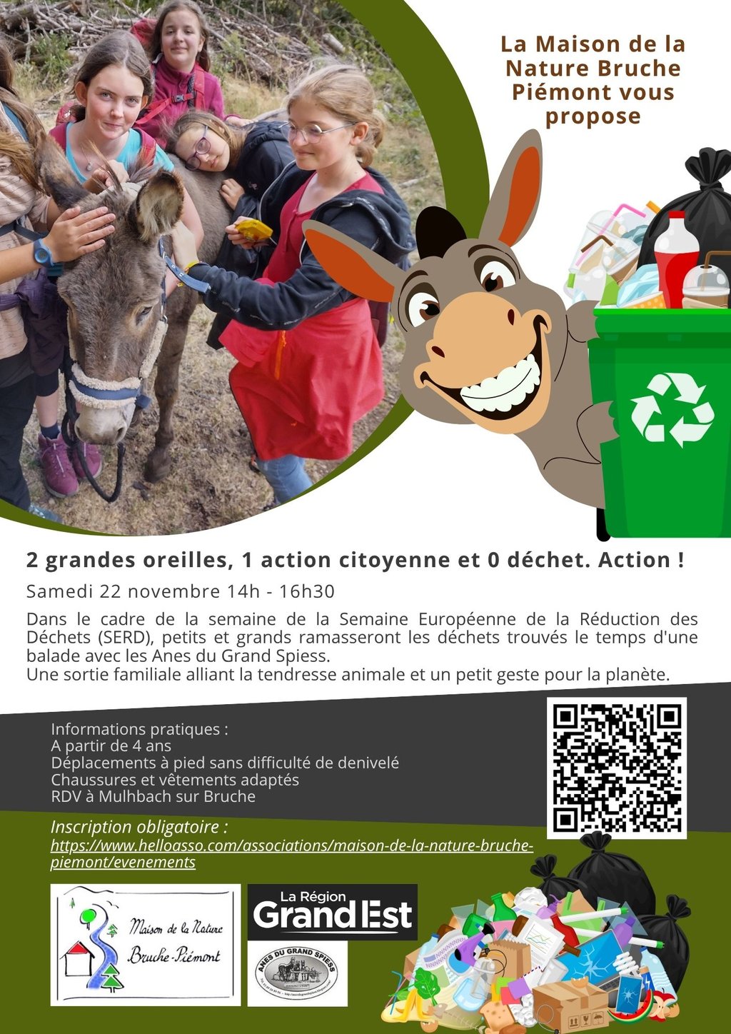 Dans le cadre de la semaine de la Semaine Européenne de la Réduction des Déchets (SERD), petits et grands ramasseront les déchets trouvés le temps d'une balade avec l' Association des Anes du Grand Spiess.