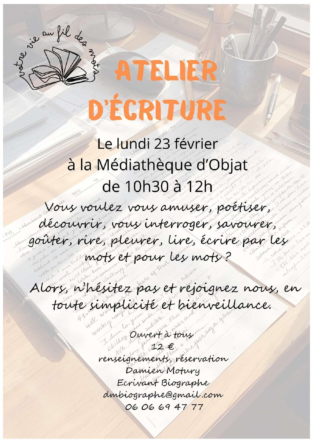 Lundi 23 février 2026 à la Médiathèque d'Objat de 10h30 à 12h.