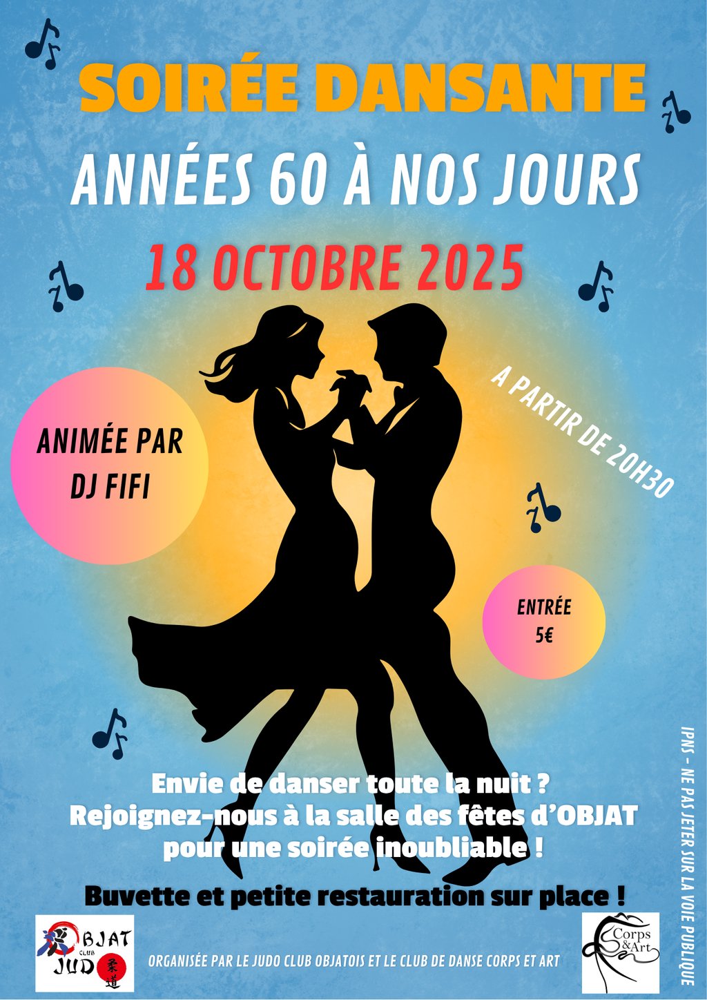 Soirée dansante ouverte à tous, organisée par le Judo Club Objatois et l'Association de Danse Corps et Art.