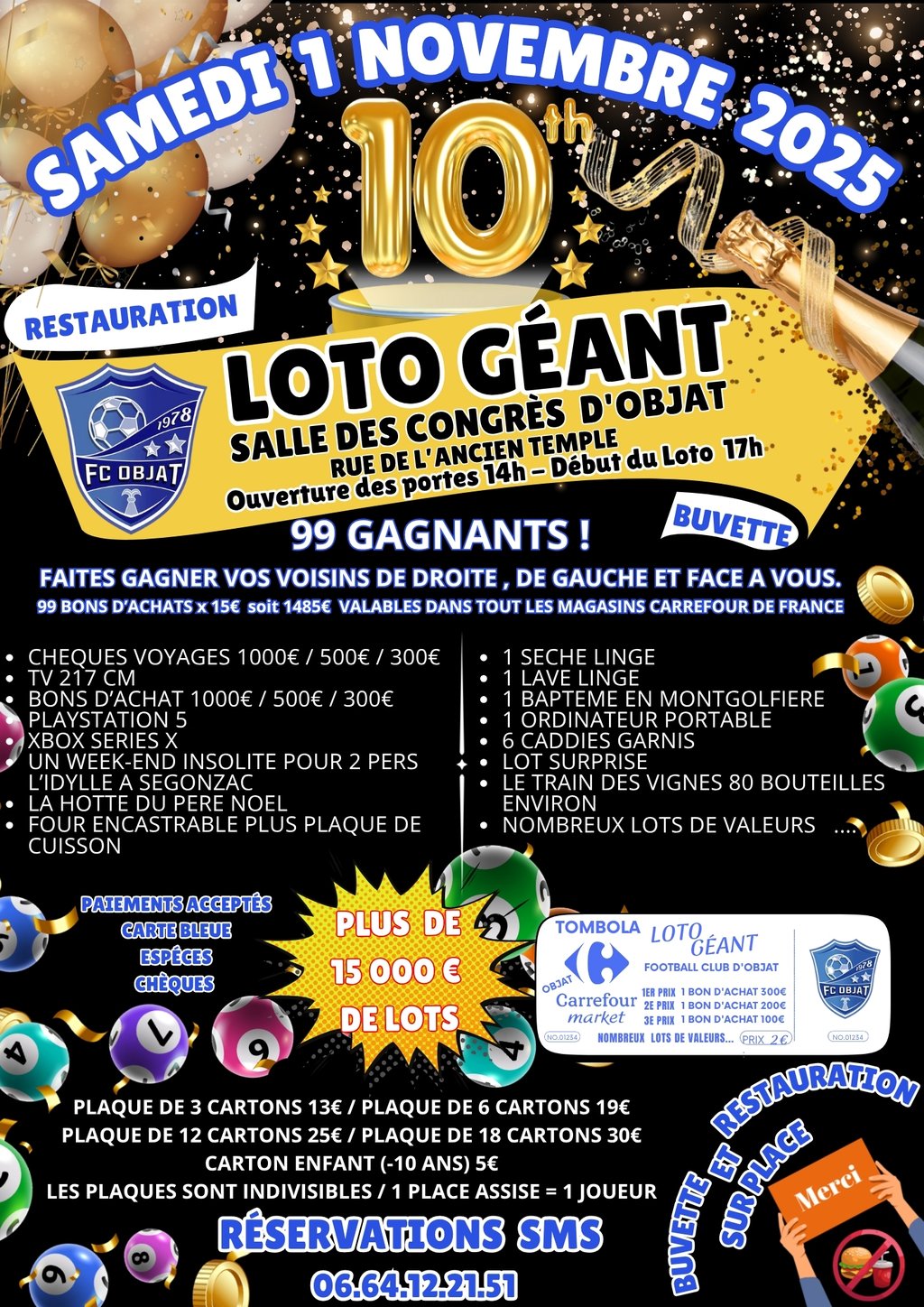 NE MANQUEZ PAS LE LOTO GÉANT DU FOOTBALL CLUB D'OBJAT !